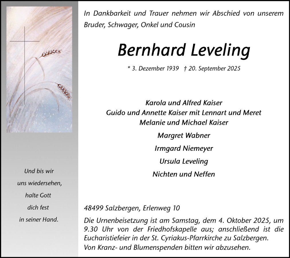 Bernhard Levelinggestorben am 20. September 2025